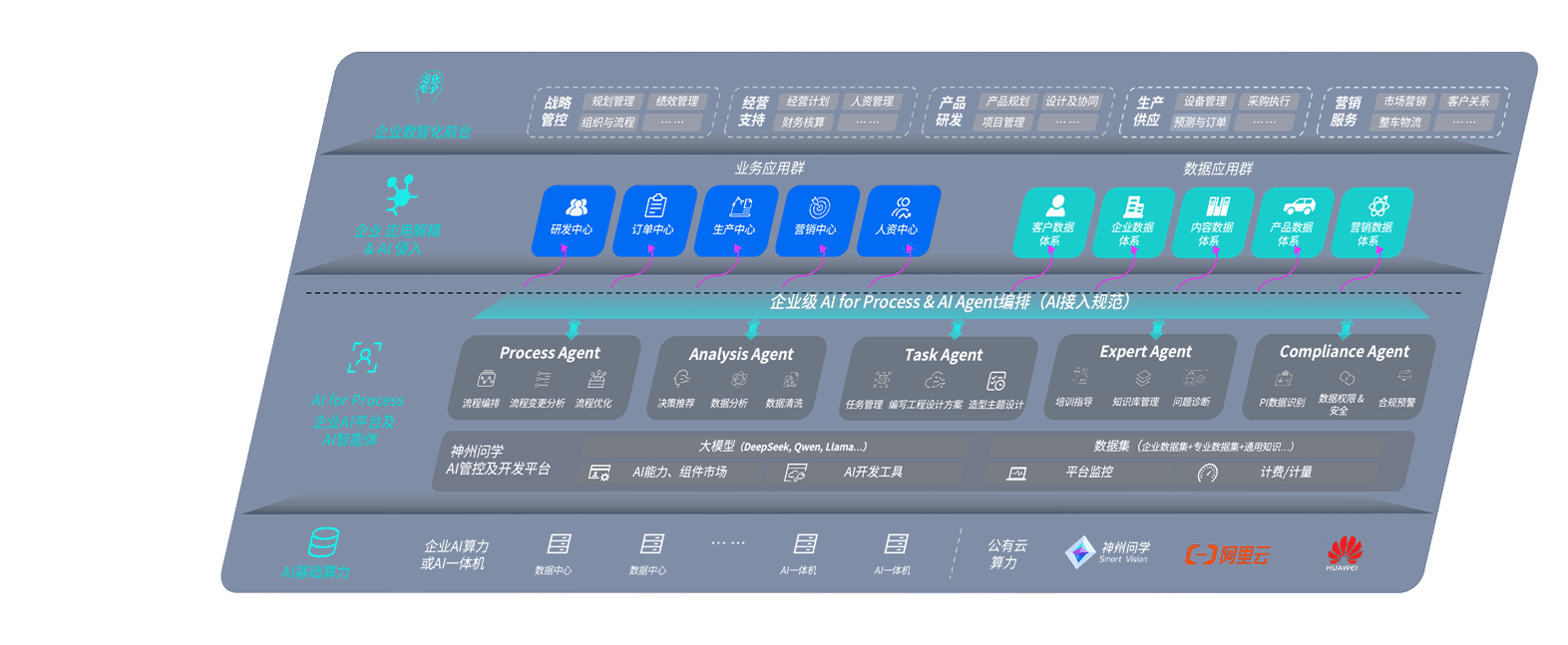 端到端的一站式AI工作空间深度融合了从企业战略规划到日常经营的全流程业务板块,,定向解决车企内部领域多、、部门多、、链条长、、场景碎片化等难题,,,,支持车企快速构建以AI为核心的生产力写作体系,,,,实现任务执行与AI能力的无缝集成与交互